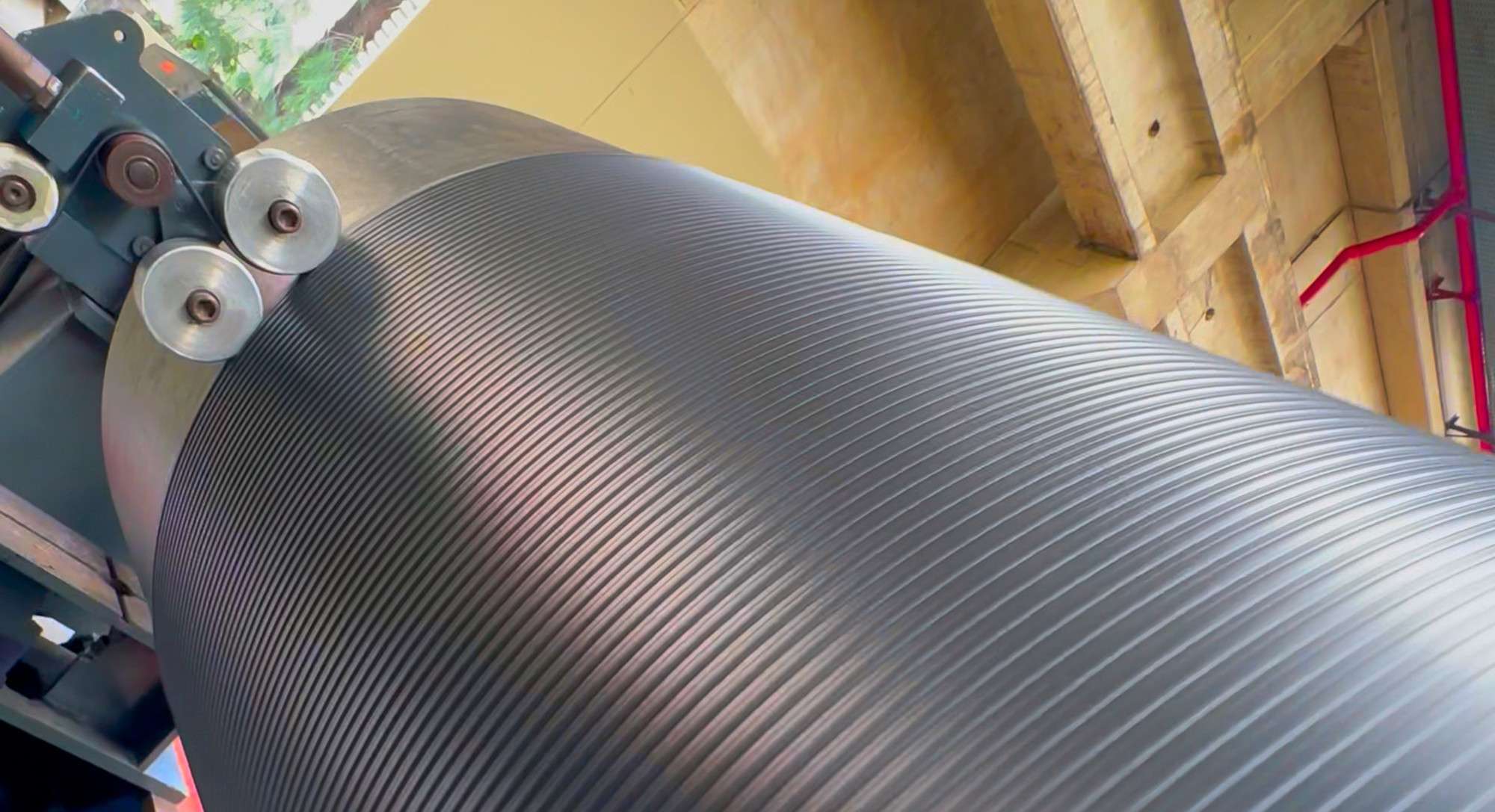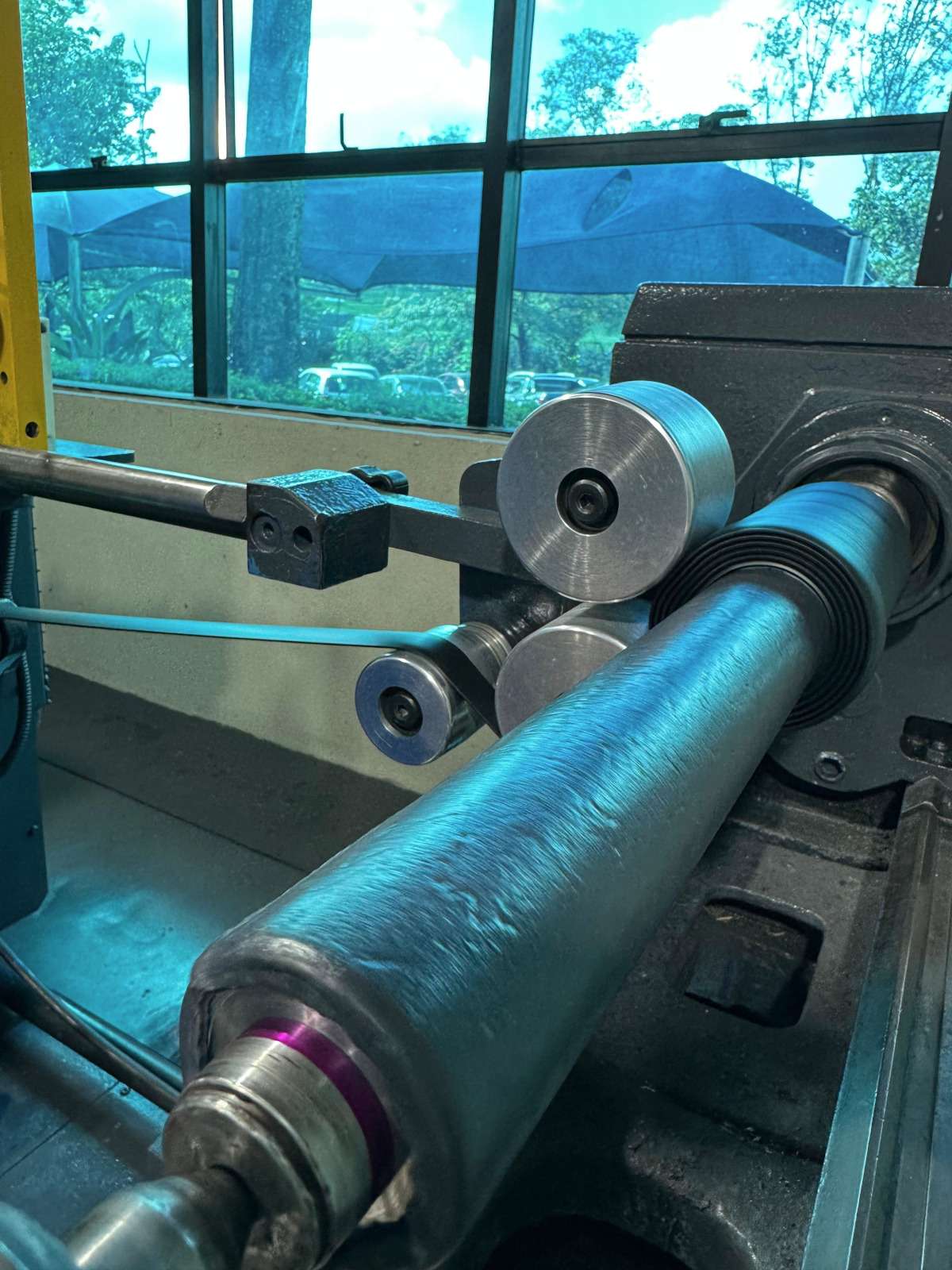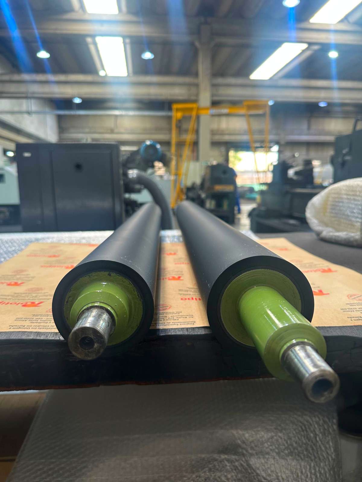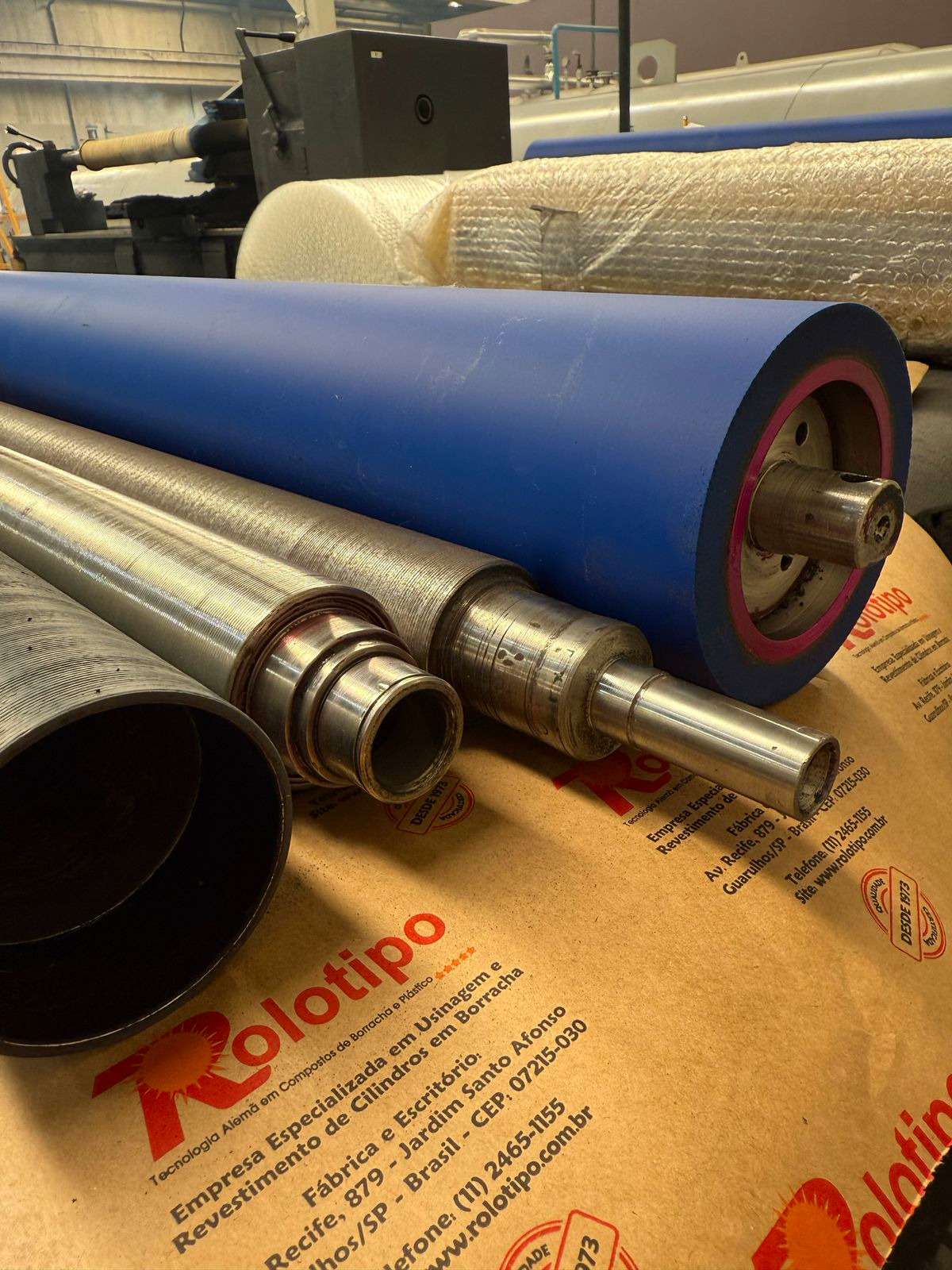Utilizamos processos modernos e tecnologia avançada, incluindo aplicação por extrusora, garantindo uniformidade e precisão no acabamento dos cilindros.